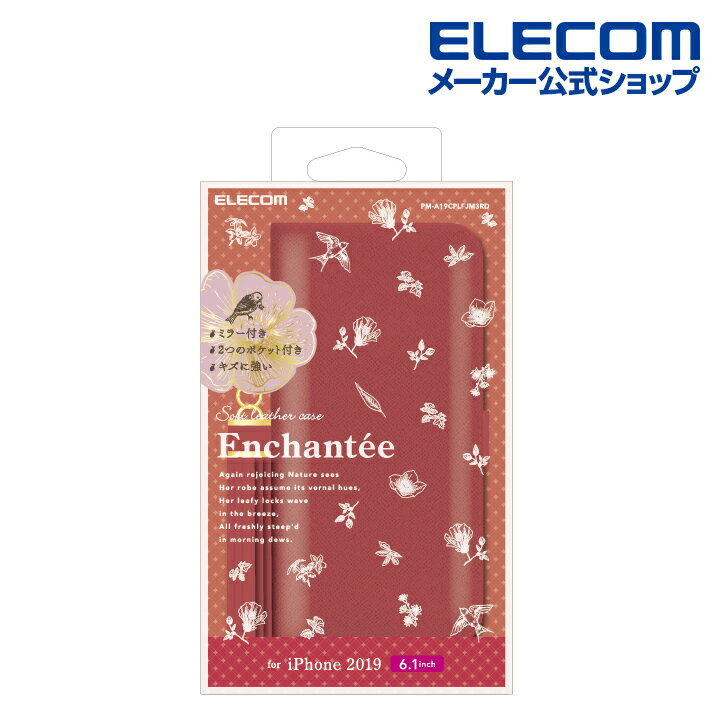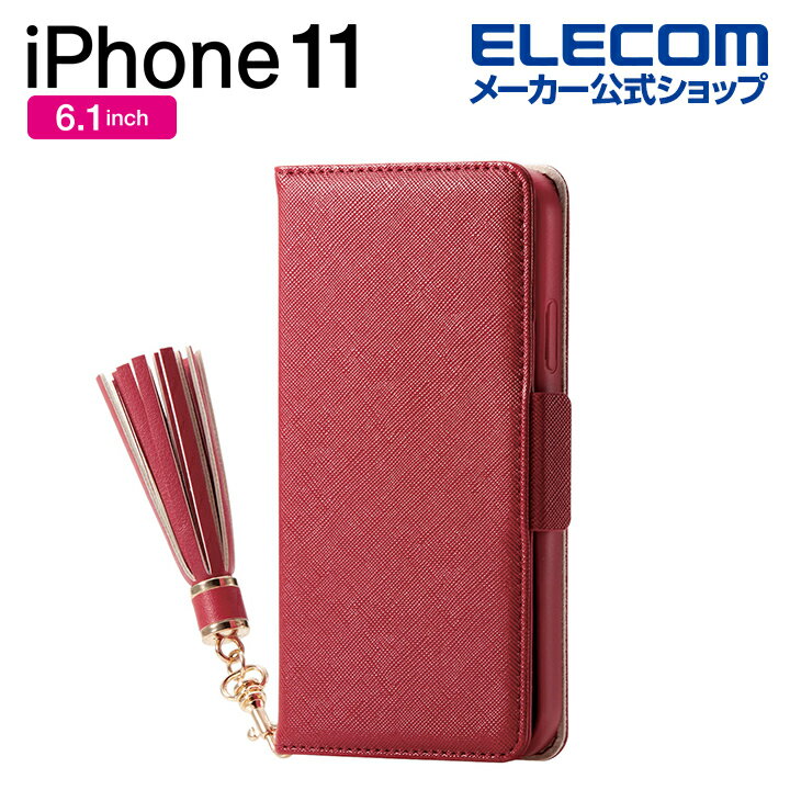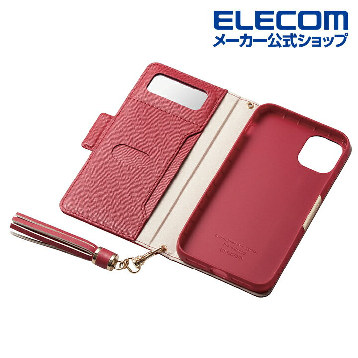 エレコム iPhone 11 用 ソフトレザーケース 磁石付 タッセル付 ケース カバー iphone6.1 iPhone11 アイフォン 11 新型 iPhone2019 6.1インチ 6.1 スマホケース ソフト レザー かわいい 可愛い 鏡 コンパクト ミラー付き レッド PM-A19CPLFJM3RD