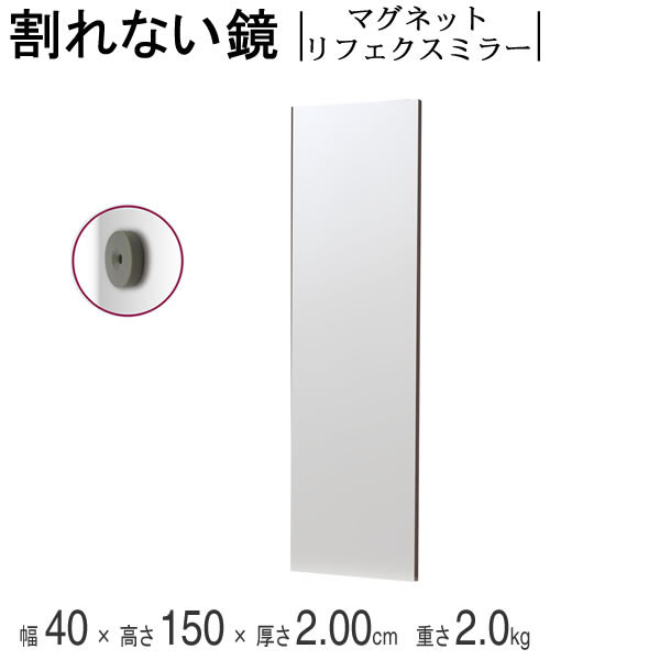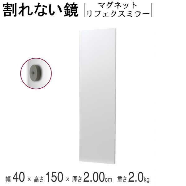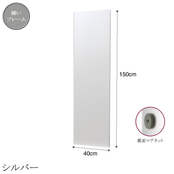 割れない鏡 ミラー マグネットタイプ フレーム シルバー 幅40×高さ150×厚さ2cm 重さ2.0kg リフェクスミラー 軽量 姿見 全身 ネオジム磁石 壁 貼り付け 日本製 RMM-3-S