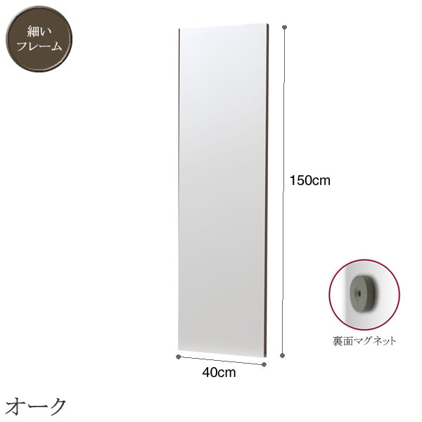 割れない鏡 ミラー マグネットタイプ フレーム 木目調オーク 幅40×高さ150×厚さ2cm 重さ2.0kg リフェクスミラー 軽量 姿見 全身 ネオジム磁石 壁 貼り付け 日本製 RMM-3-MO