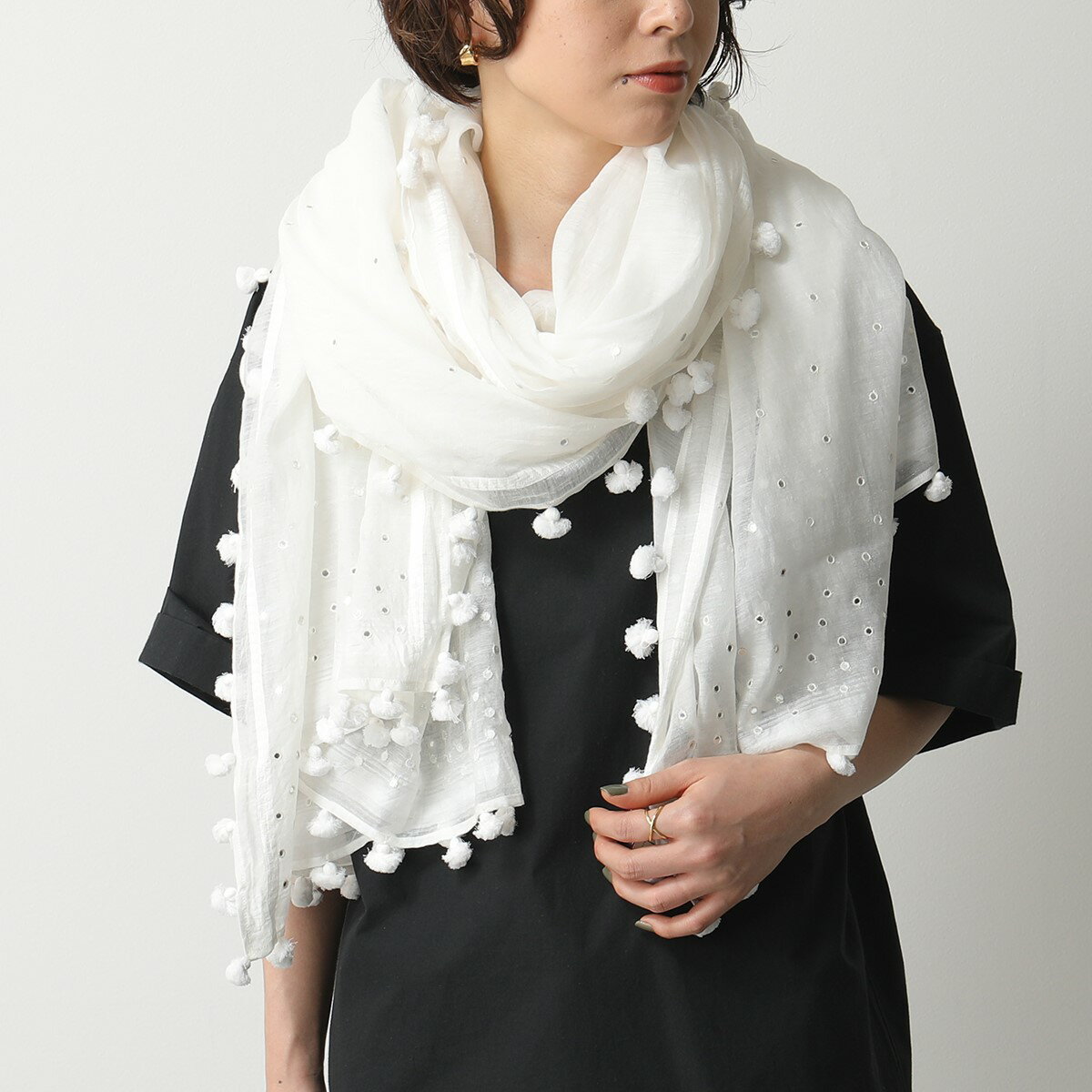 CITRUS シトラス C18237 シルク混コットン 大判 ストール ガーゼショール ポンポン×ホログラム装飾 Natural レディース